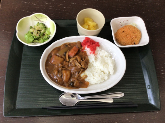 メンチカツもサクサク!グリーンサラダにフルーツもあり、