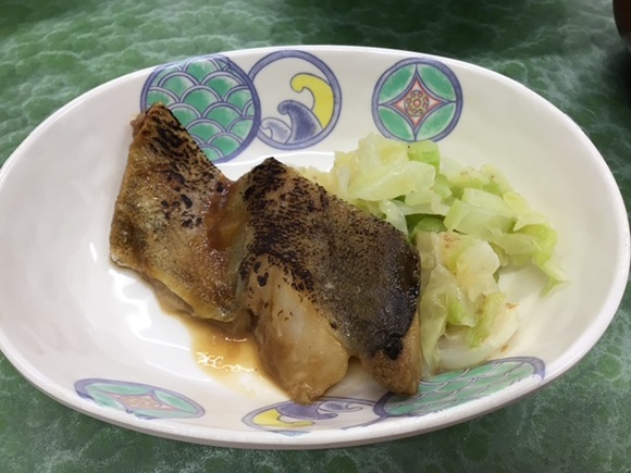 タラの照り焼きは皮の表面にみりん味の照りが塗ってあり、ご飯によく合いますね![]()