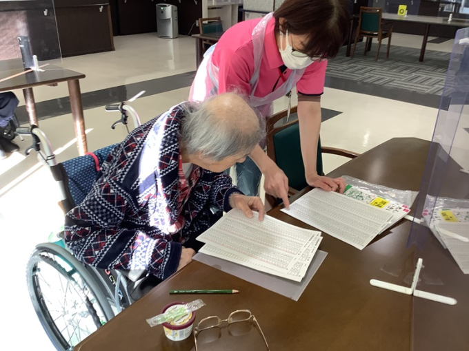 2025年03月06日 頑張っています♪ ご家族様からお預かりした脳トレ、なかなか手つかずに居室にありましたので、職員と一緒にホールにてやってみました。 重い腰を上げてみると、すらすら♪すらすら♪ お見事です!!