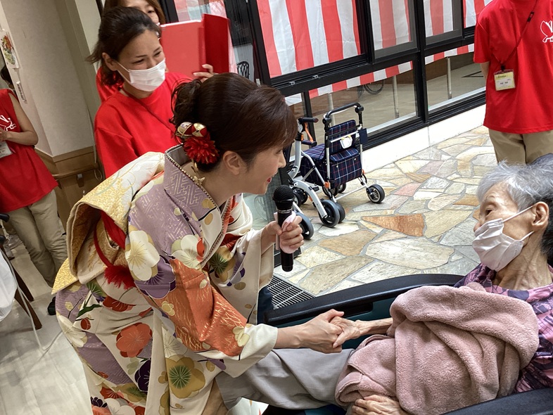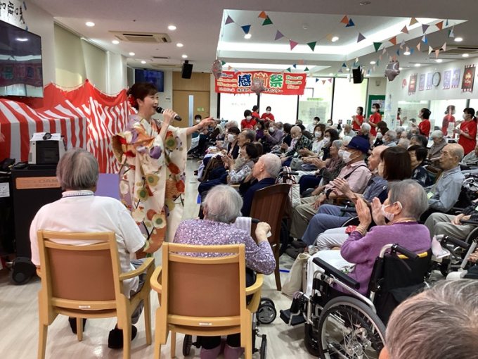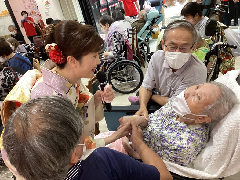 ベッド上で過ごされる時間が長い利用者様の中には、渕上雅代の歌声に涙される方がみえました。