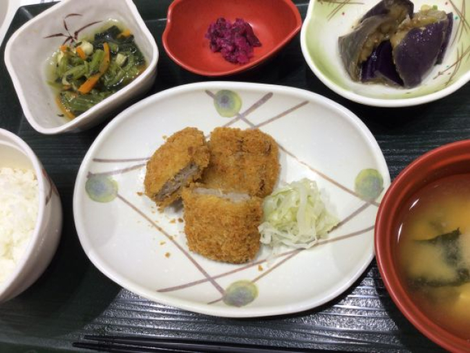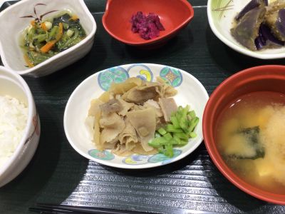 青菜の煮びたし 茄子の香味和え お味噌汁