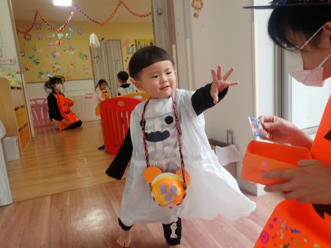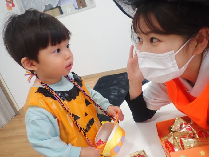 この日の為に「トリックオアトリート」と練習をしてきましたよ♪