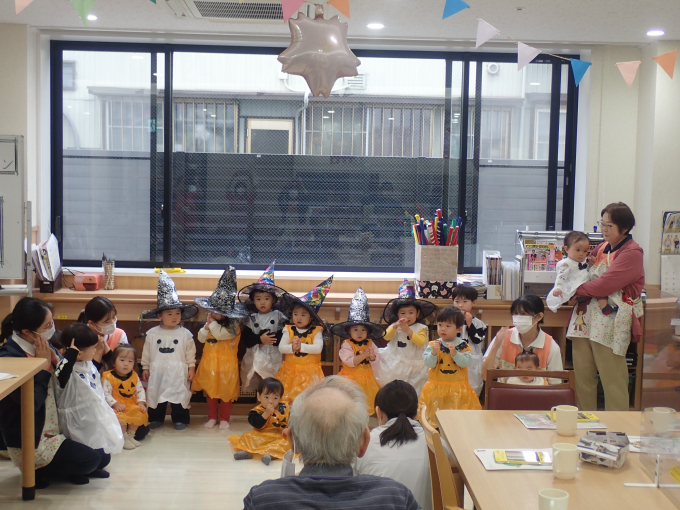 どんぐりの木では毎年仮装して、壱番館・弐番館へ訪問し、手遊びやお歌などを披露しています♪