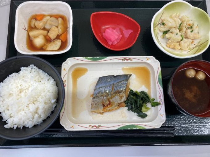 鰆のみりん焼き、里芋のころ煮 カリフラワーの和え物 味噌汁 漬物 御飯 でした