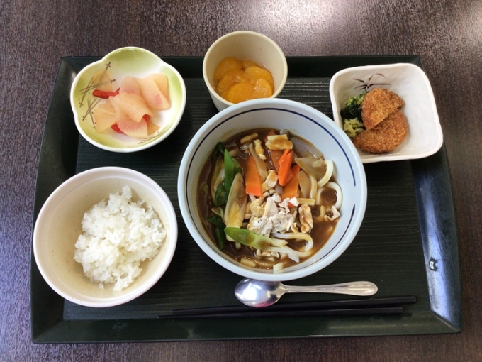 本日のメインはカレーうどんでした。最近はまた一段と冷え込んできているので、