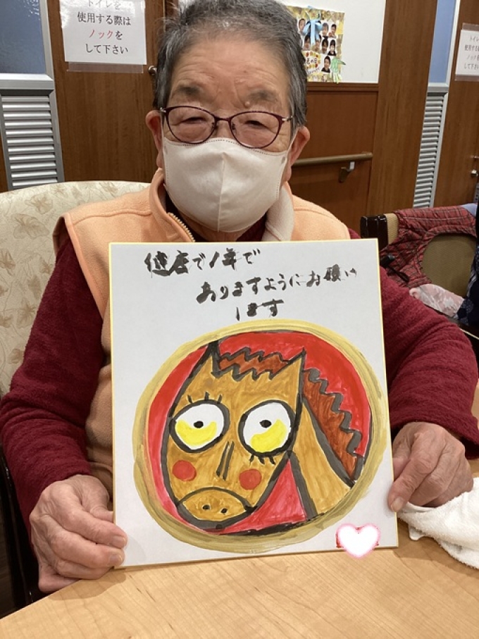 絵手紙教室では、今回特別に色紙をご用意し、馬の絵を描いていただきました。